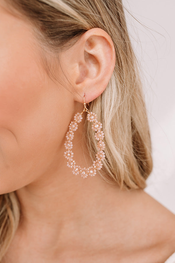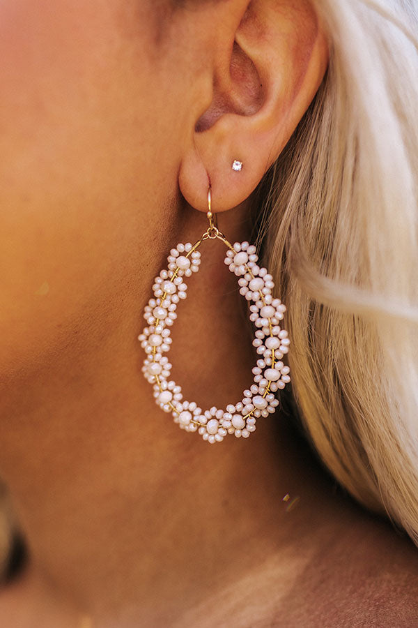 These adorable statement earrings are "sun-sational" with their dangling champagne colored beaded flower teardrops!