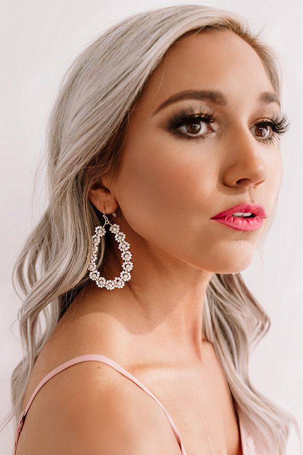 These adorable statement earrings are "sun-sational" with their dangling ivory colored beaded flower teardrops!