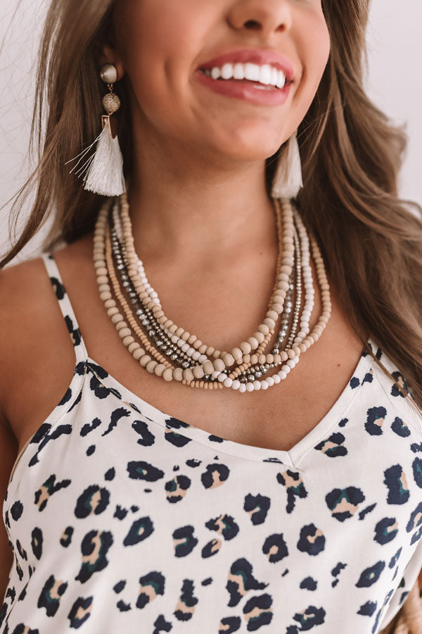 Sun, Sea, And Sand Layered Necklace In Khaki