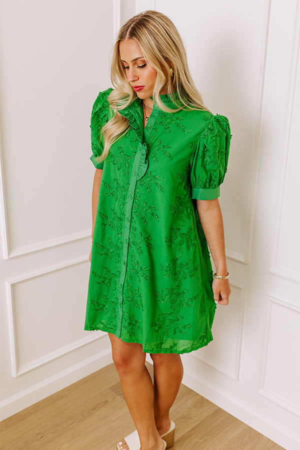 Sunday Brunch Embroidered Mini Dress in Kelly Green