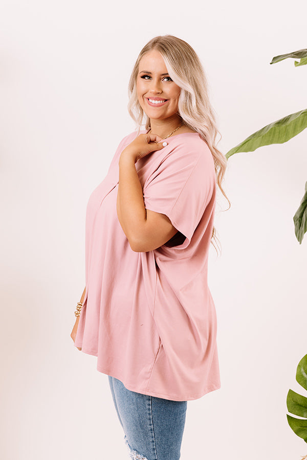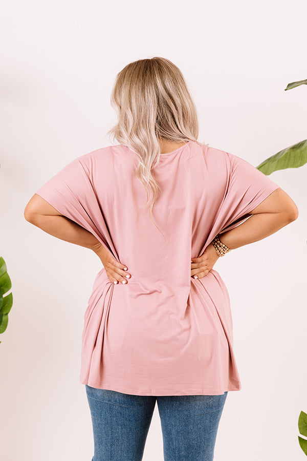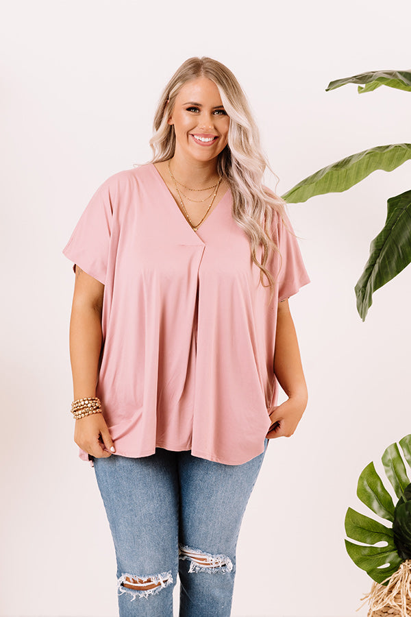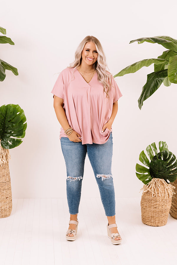 Plus Size - Stroll from season to season in style with this casual but cute blush colored shift top featuring lightweight flowy material, a v-cut neckline, short loose sleeve, and a relaxed silhouette that falls into a straight hemline! Measurements