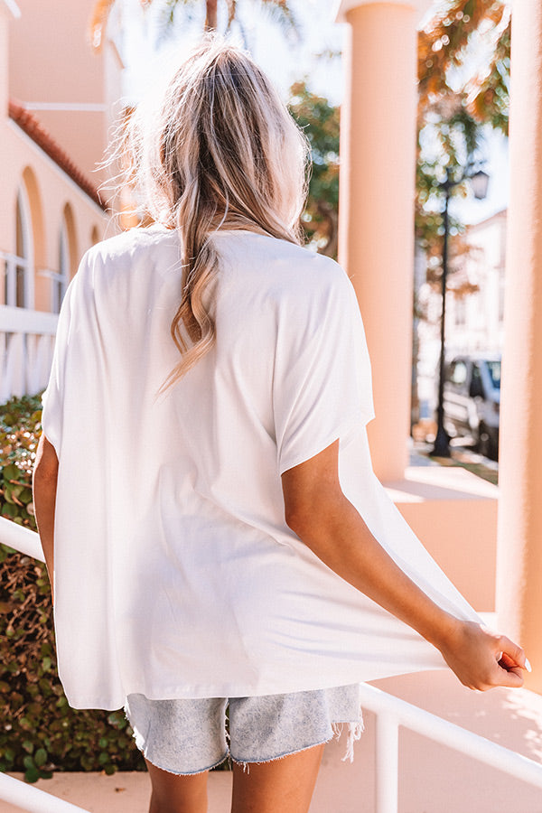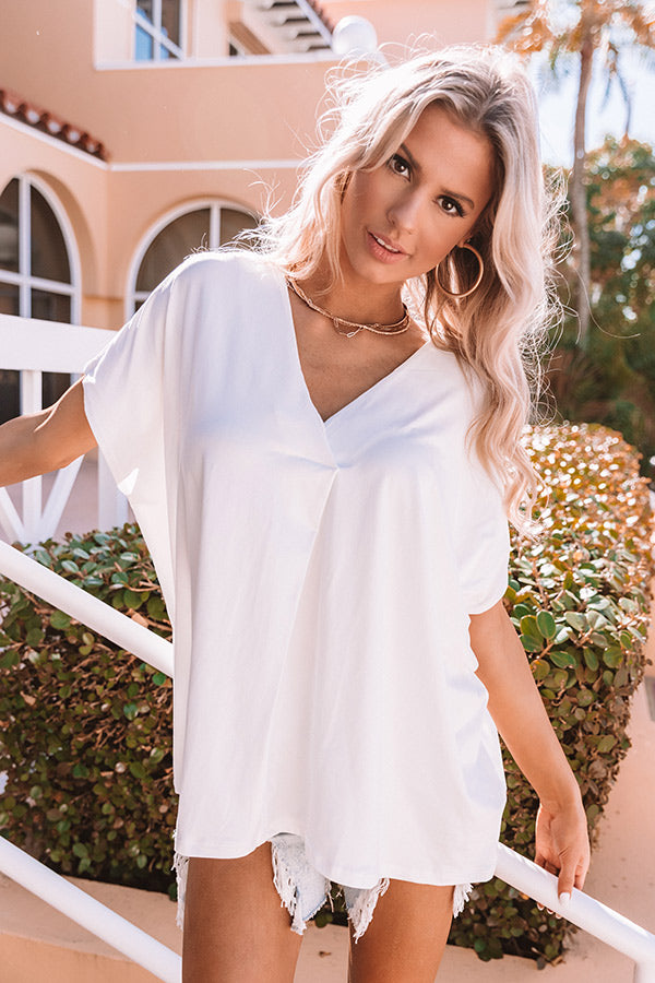 Stroll from season to season in style with this casual but cute white shift top featuring lightweight flowy material, a v-cut neckline, short loose sleeve, and a relaxed silhouette that falls into a straight hemline! Measurements