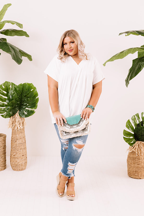 Plus Size - Stroll from season to season in style with this casual but cute white shift top featuring lightweight flowy material, a v-cut neckline, short loose sleeve, and a relaxed silhouette that falls into a straight hemline! Measurements