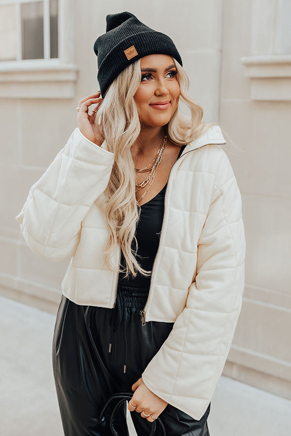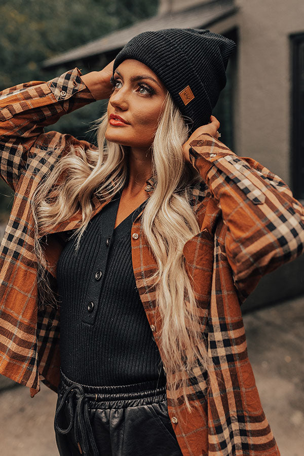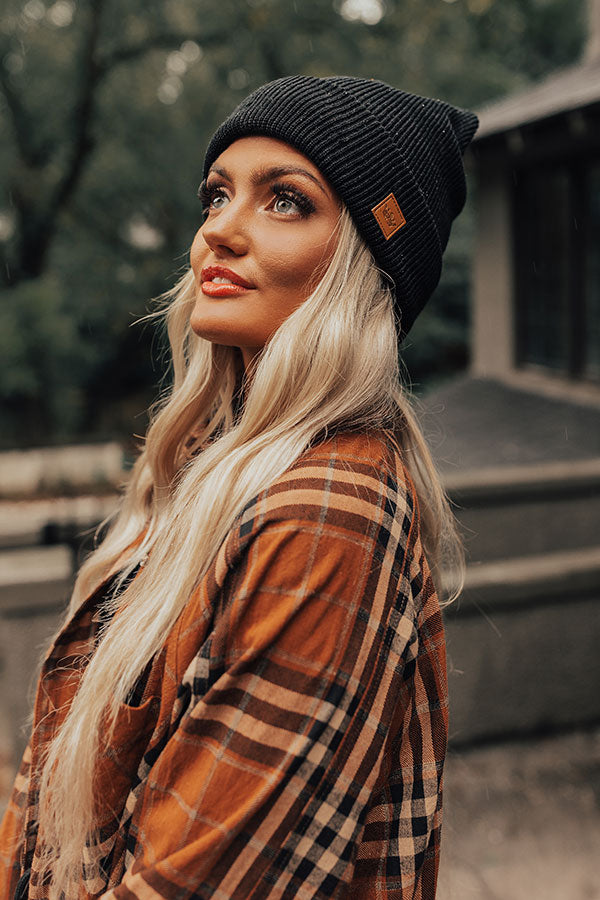 Keep the chill out when the sun goes down with this cute black beanie featuring stretchy and warm knit material lined with fleece and a rolled hemline!
