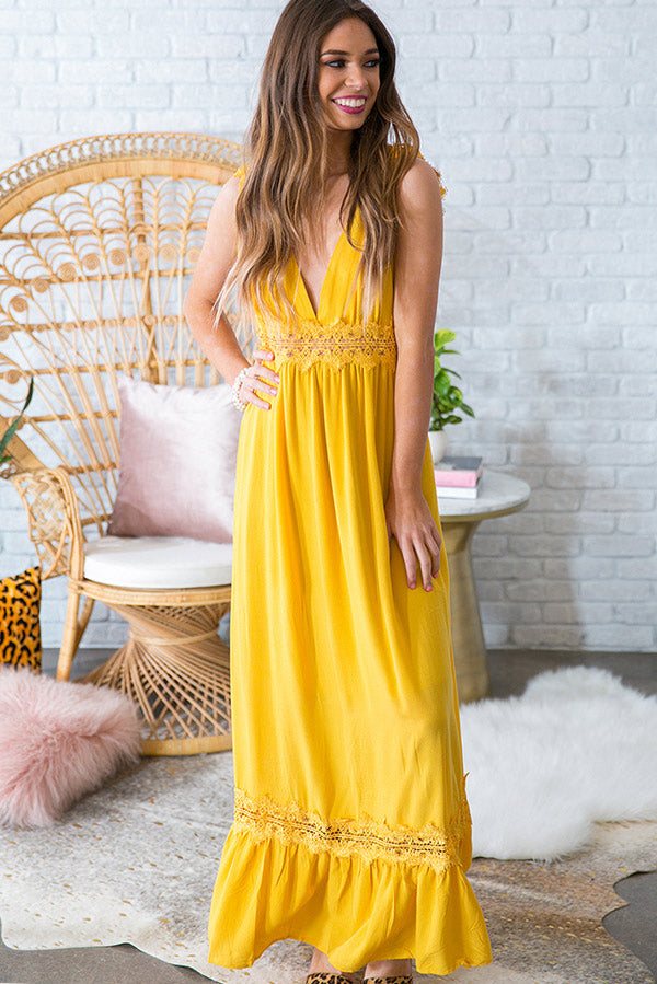 Sunkissed in Santorini Crochet Maxi in Marigold