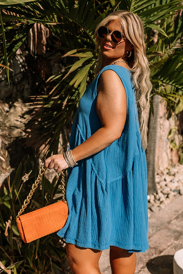 Sunny Forecast Shift Dress in Ocean Blue Curves