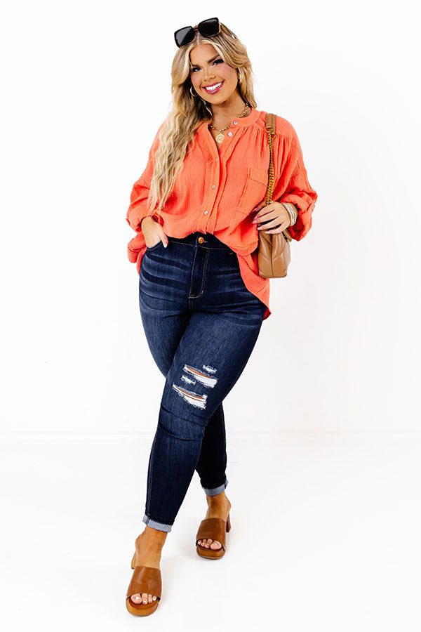 – Long, loose sleeves with rolled cuffs for an optional ¾ look