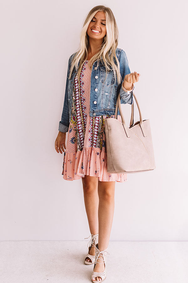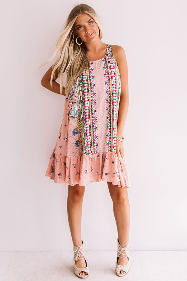 You will bring the sun to Santorini when you wear this pink shift dress with its colorful accents, keyhole cutout in the back, rounded hem, wide straps, and flowy hem! This ornate piece looks amazing with nude wrap heels and a faux suede hat or with colored wedges like our "Nicolette Faux Suede Espadrille in Hot Pink" and statement earrings similar to our "Bali Bungalow Earrings in Fuchsia!" Measurements