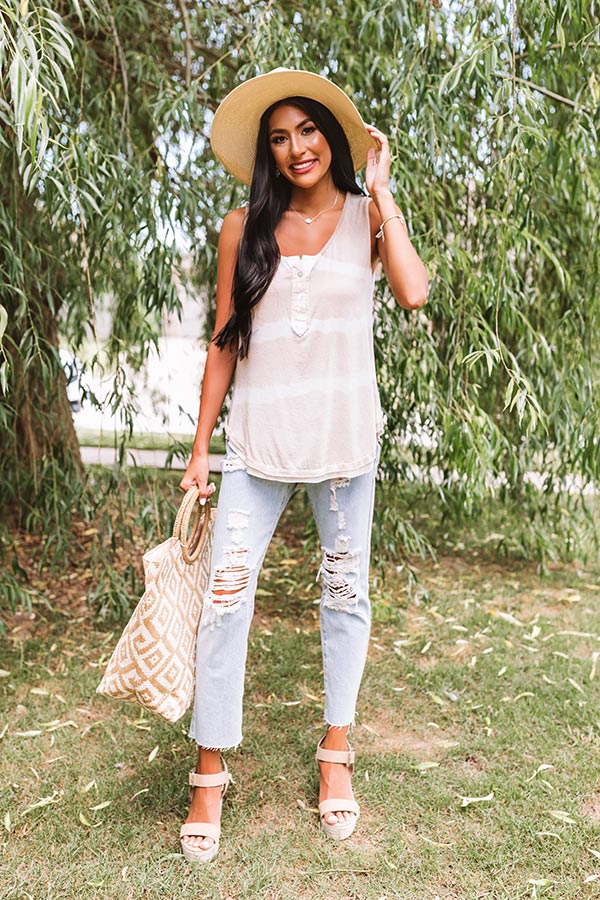 Wear clothes that matter, like our trendy "Sunny Studio Shift Top" featuring soft lightweight material featuring horizontal white accent stripes, a button-up bodice with a scooped neckline, wide 2-inch sleeveless shoulder straps, and a relaxed silhouette that falls into a rounded raw-cut hemline with side slits! This casual cutie styles perfectly with some distressed light wash denim, neutral wedges, and a woven tote and hat, but you can also wear it with some frayed white shorts and "The Carolina Heel in Natural!" Measurements