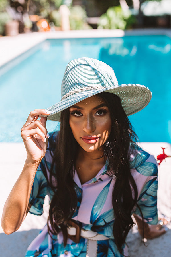 A positive attitude is good for the head...and a fab hat doesn't hurt either! This mint cutie is perfect for a sunrise beach walk with its wide brim and braided accent tie!