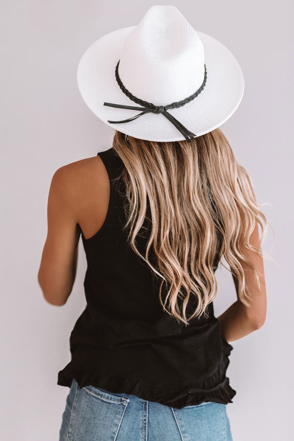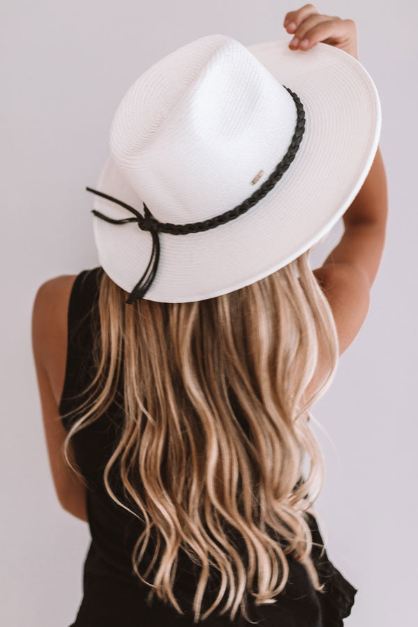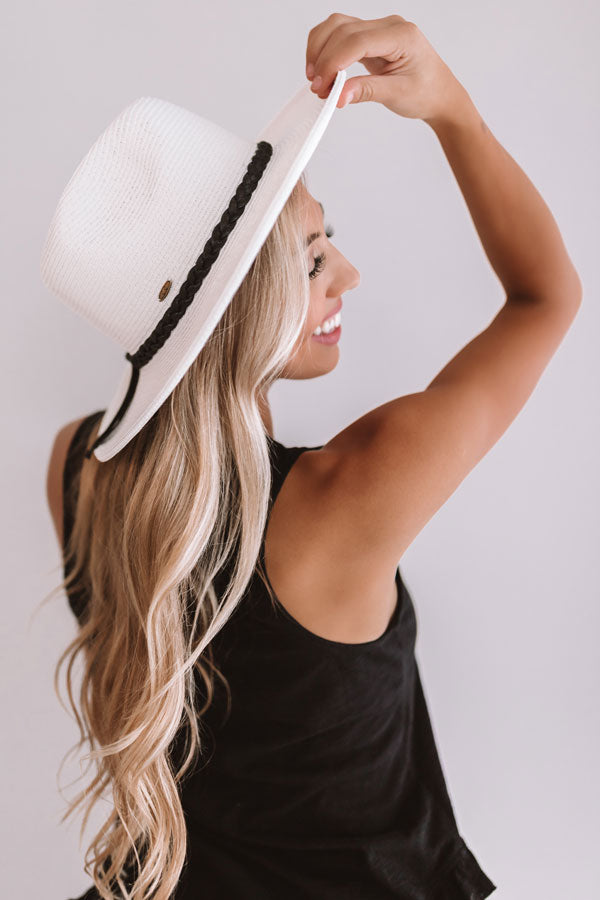 A positive attitude is good for the head...and a fab hat doesn't hurt either! This white cutie is perfect for a sunrise beach walk with its wide brim and braided accent tie!