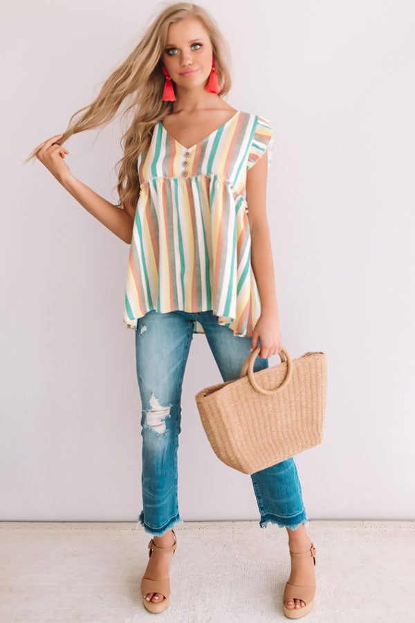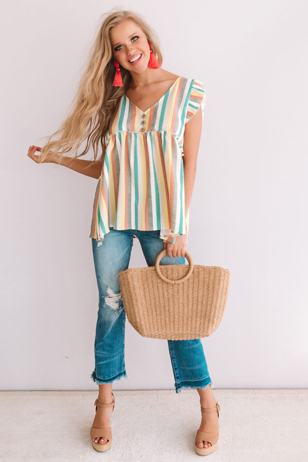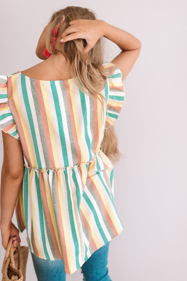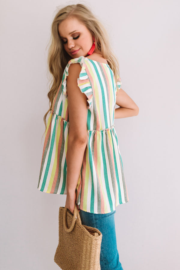 Sunrise Beach Walk Stripe Babydoll Top in Emerald