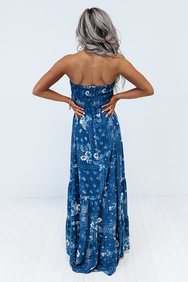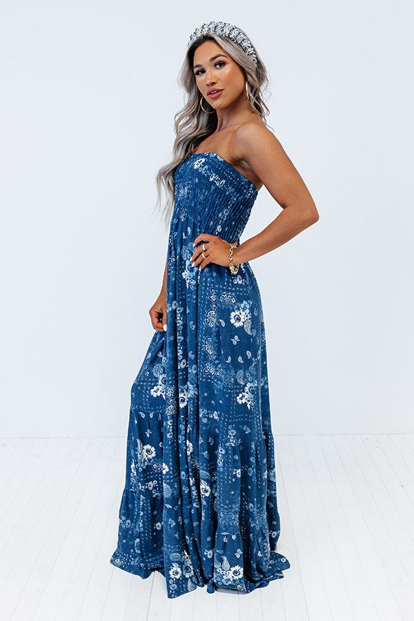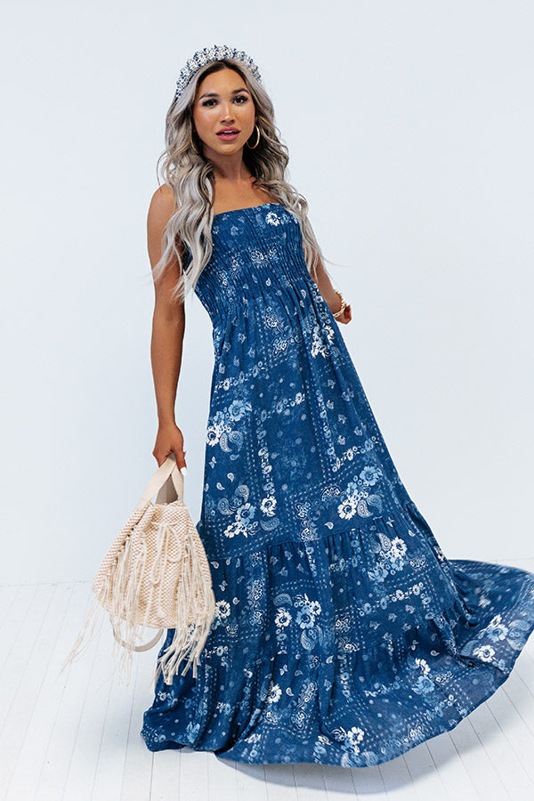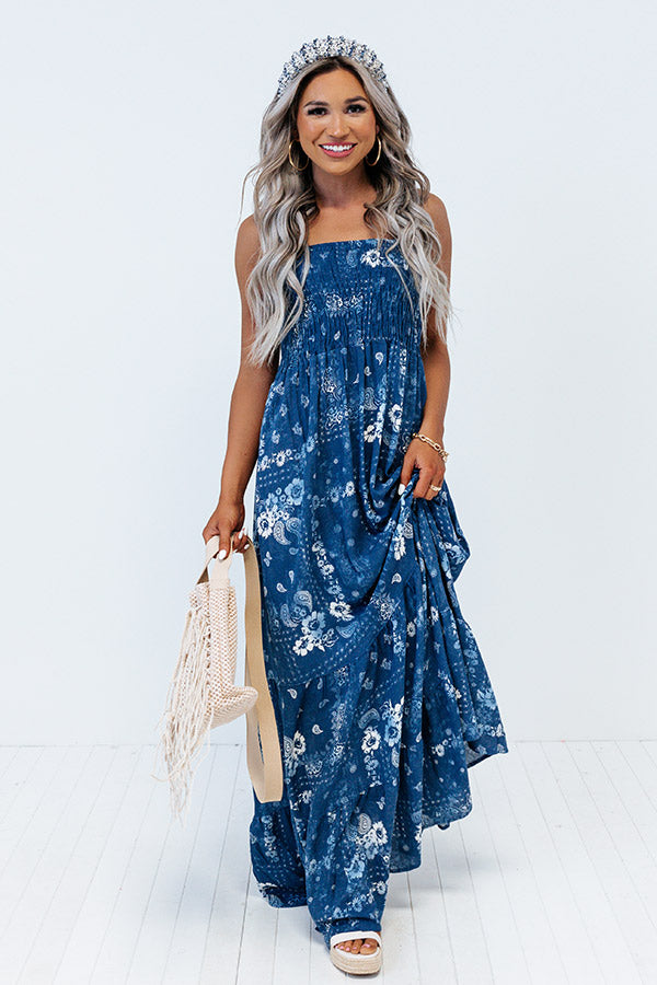 Strike a pose in our blue photo-worthy 'Sunrise Kisses' maxi dress featuring lightweight breezy material patterned with a pretty paisley print, a smocked bodice with a straight off-shoulder neckline, and a relaxed skirt silhouette that cascades into a straight floor-length hemline! on products Measurements