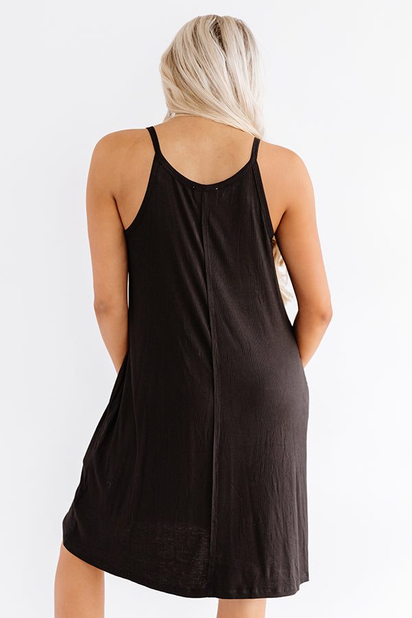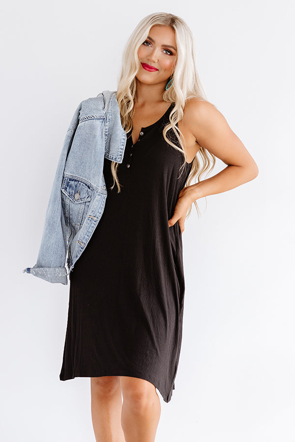 Sunset Blvd Dreams Henley Shift Dress in Black