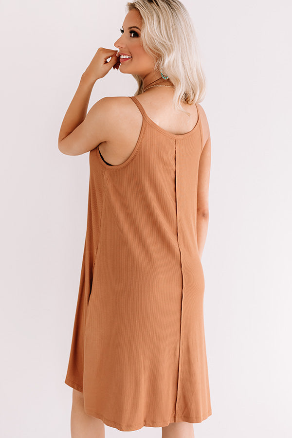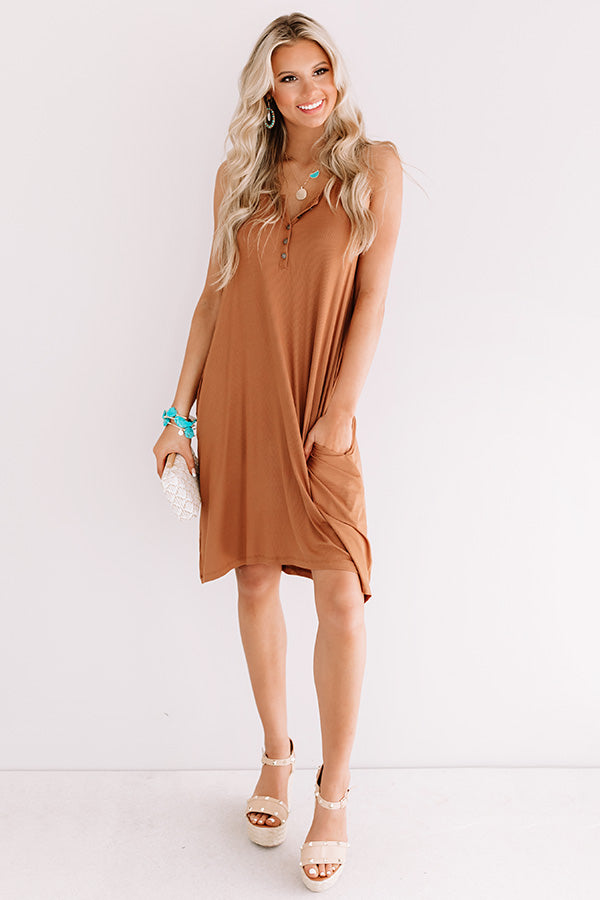 Sunset Blvd Dreams Henley Shift Dress in Camel