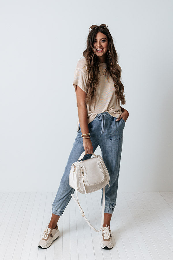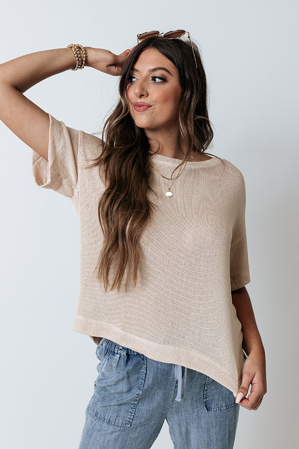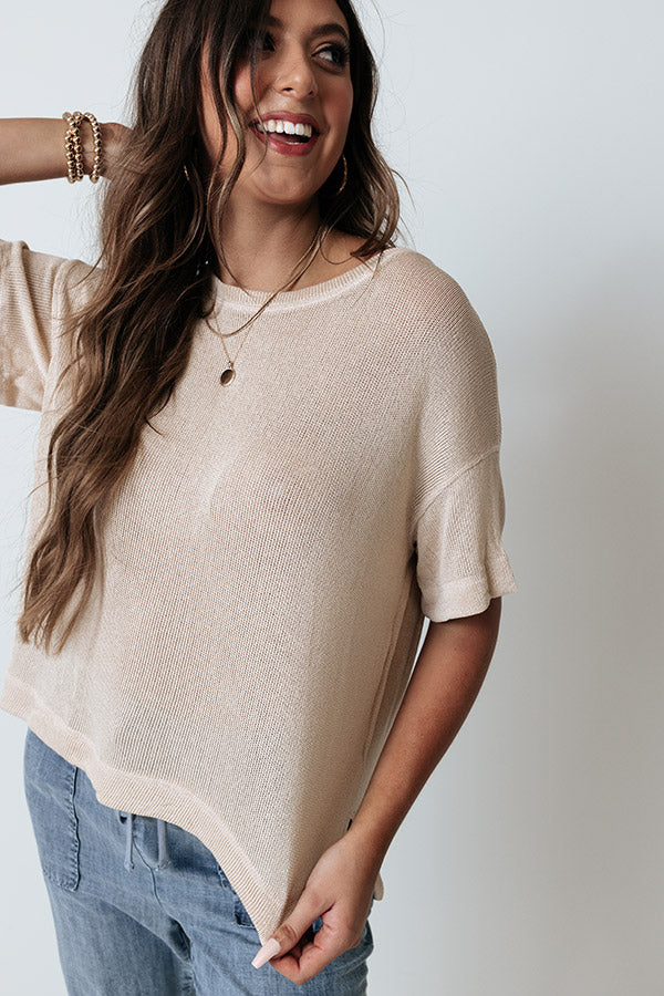 Sunset Hours Knit Shift Tee In Light Beige