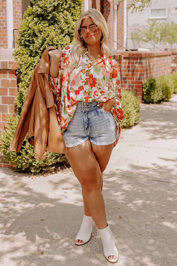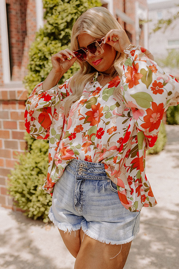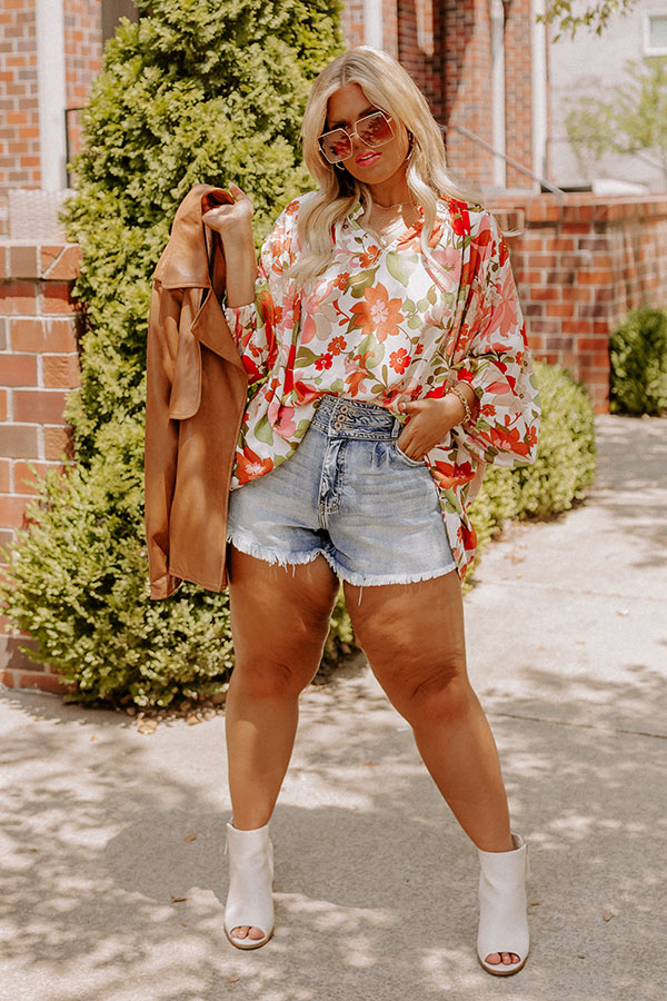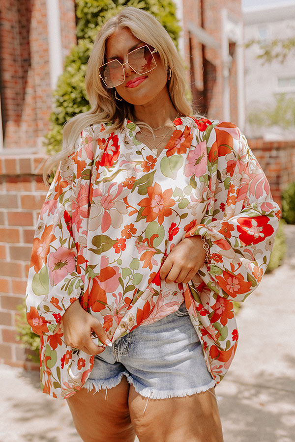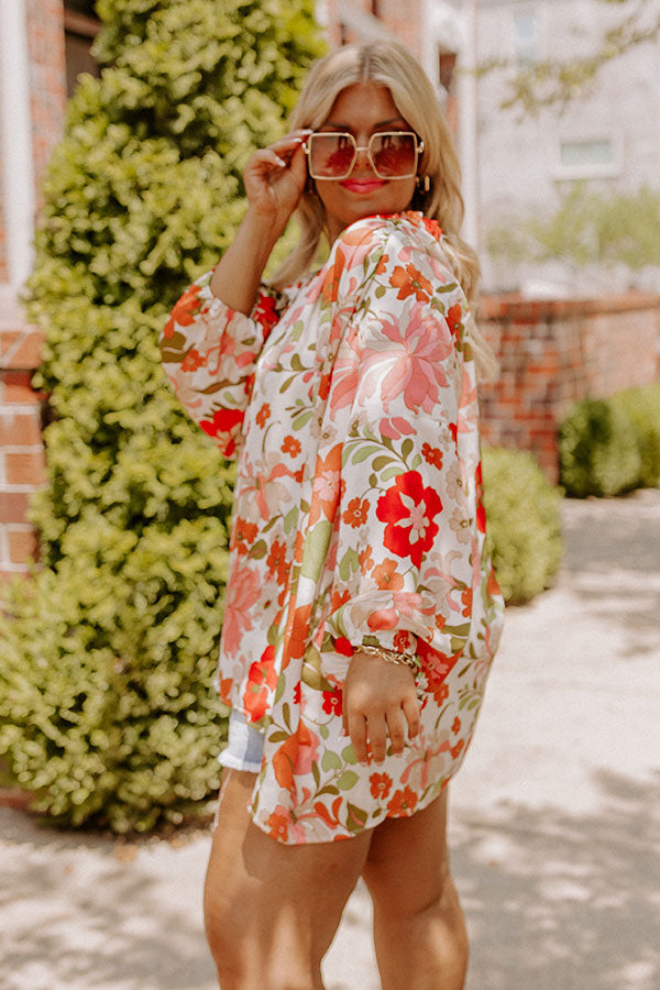 All eyes are sure to be on you in our pretty white plus size 'Sunset Situation Shift Top' featuring lightweight material patterned with a bold floral print, a v-cut neckline, long oversized sleeves, and a relaxed silhouette that falls into a straight hemline!