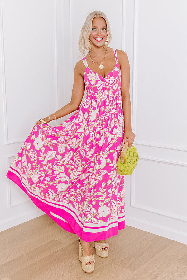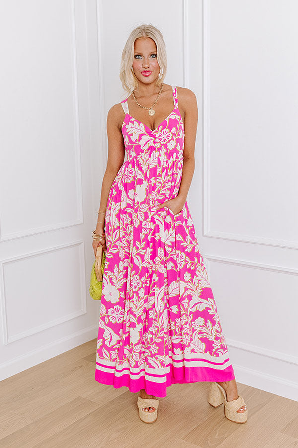 - Showcase sunny style with this stunning floral maxi dress! Embrace the essence of casual elegance as you sway in its flowy silhouette and enchant with a flirty open back. Perfect for stylish strolls downtown, or any summer adventure, this dress is a must-have addition to your wardrobe rotation. Let the fabulous blooms and effortless charm brighten up your day wherever you go!