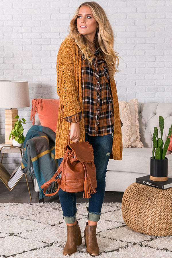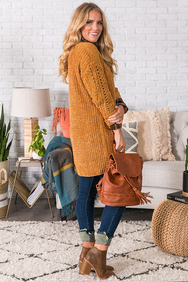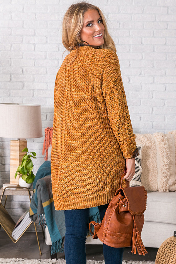 Sunsets And S'mores Nights Chenille Cardigan in Mustard