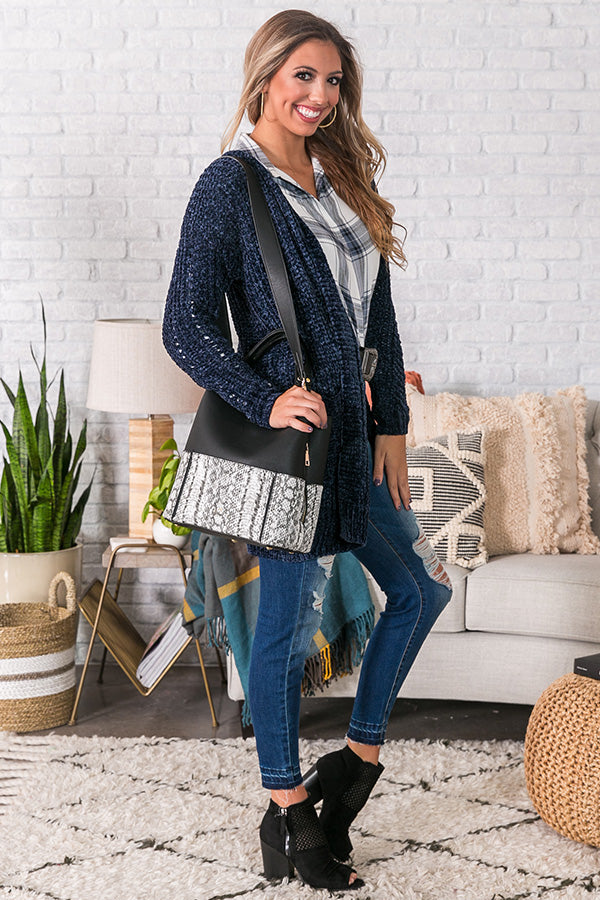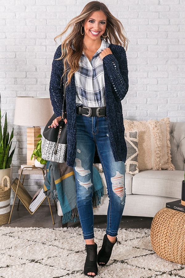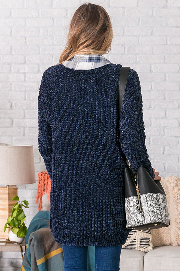 Sunsets And S'mores Nights Chenille Cardigan in Navy