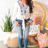 Watch the sunset in Greece, or enjoy a concert in the park in this chic shift top! This boho babe has a gorgeous floral embroidered v-cut neckline, long bell sleeves with floral embroidery & crochet trim at the cuff & a breezy rayon bodice with a trendy tie bottom hem. Style with your favorite denim & wedges for the ultimate boho chic look!