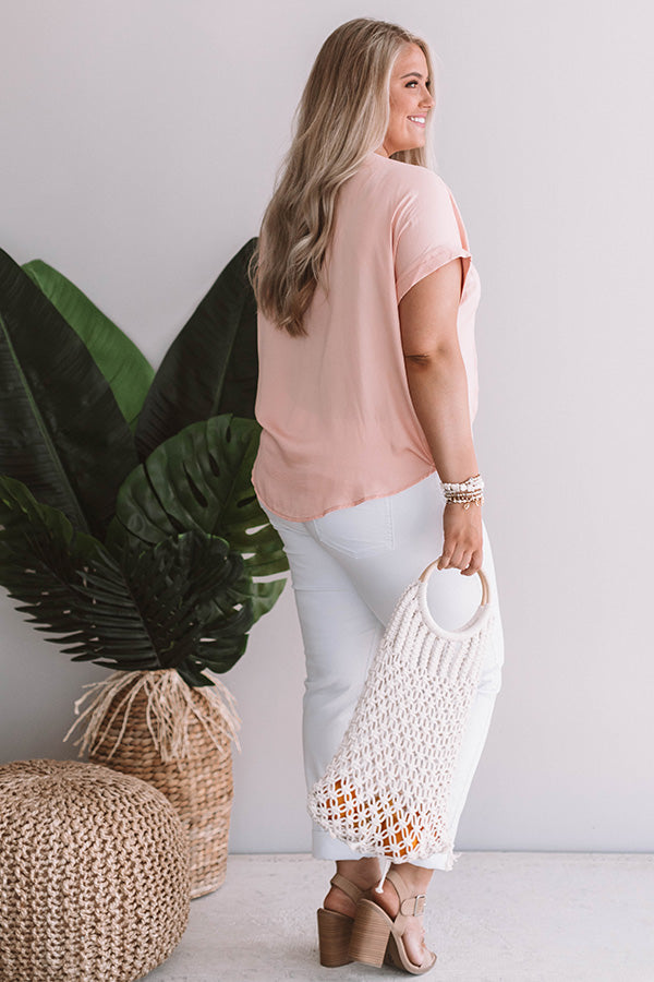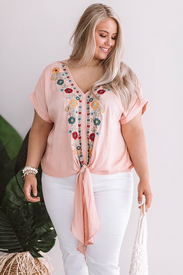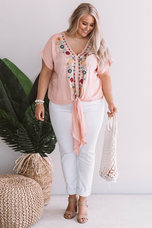 Sunshine On My Mind Embroidered Tie Top in Peach Curves