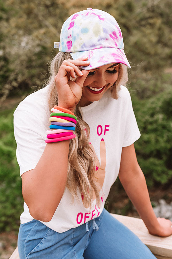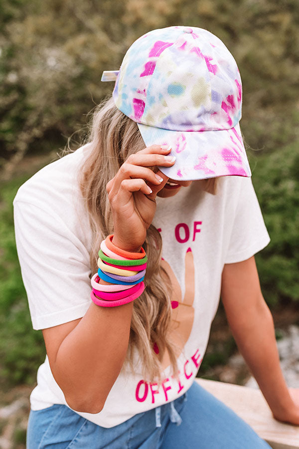 Live life colorfully by accessorizing with our vibrant "Sunshine State" baseball cap featuring lightweight material patterned with blue, hot pink, and yellow hued tie dye, an adjustable silhouette, and a curved brim!