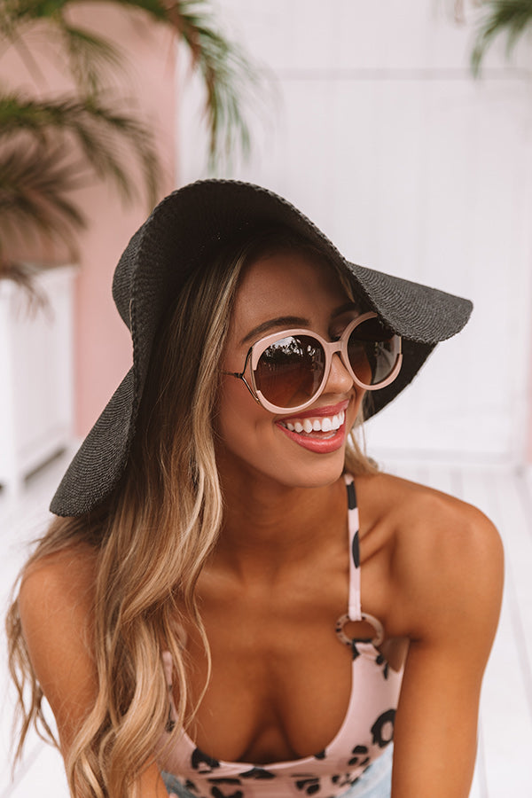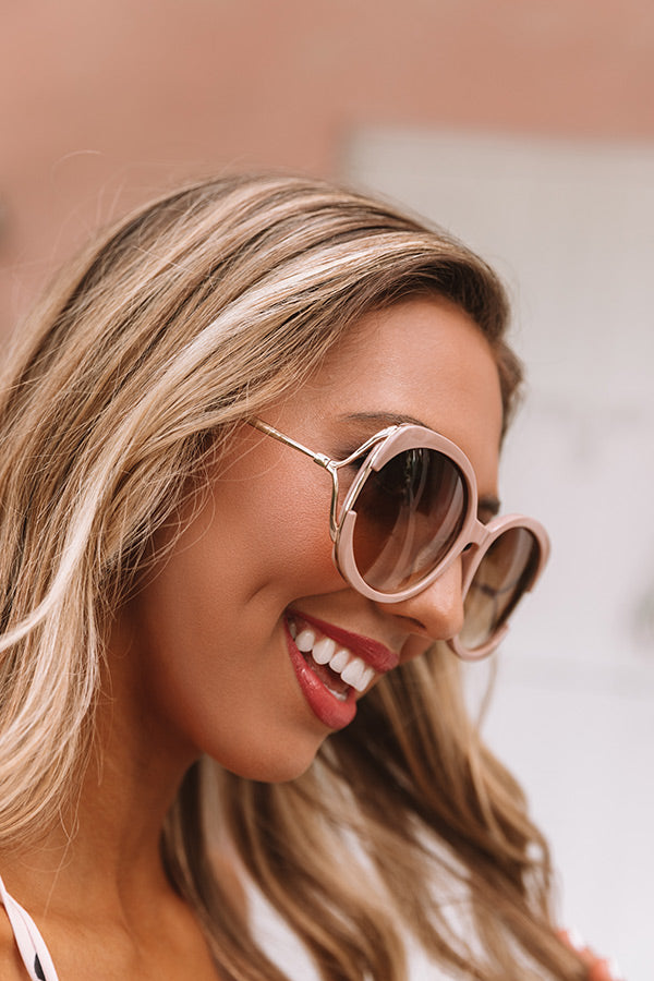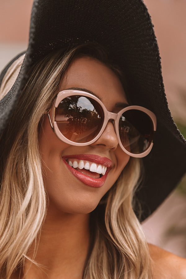 There is no such thing as too many pairs of sunglasses, so go ahead and add our adorable "Sunshine Suite Sunnies" to your cart with their thick rounded iced latte colored frames, rose gold ear pieces, and dark tinted lenses!