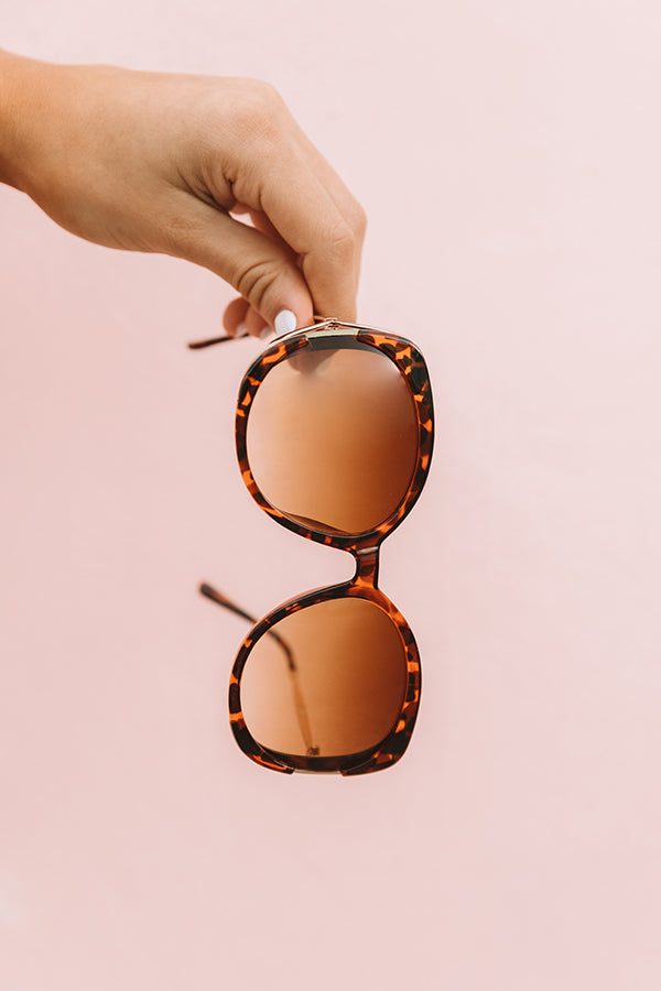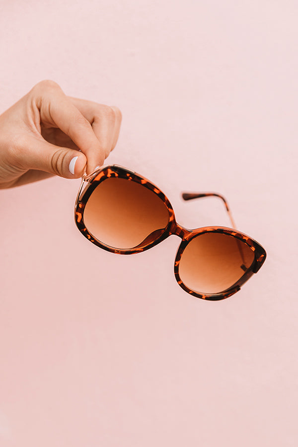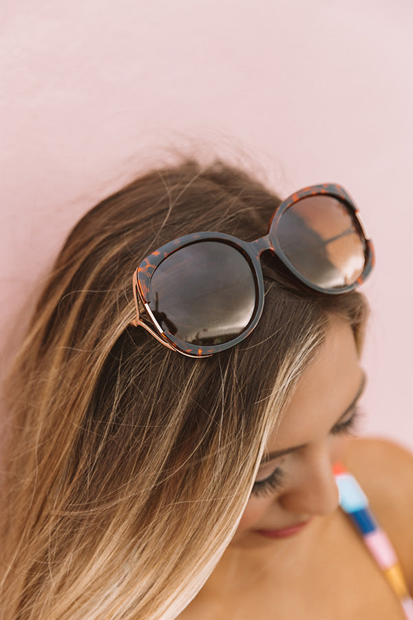 There is no such thing as too many pairs of sunglasses, so go ahead and add our adorable "Sunshine Suite Sunnies" to your cart with their thick rounded tortoiseshell print frames, rose gold ear pieces, and dark tinted lenses!
