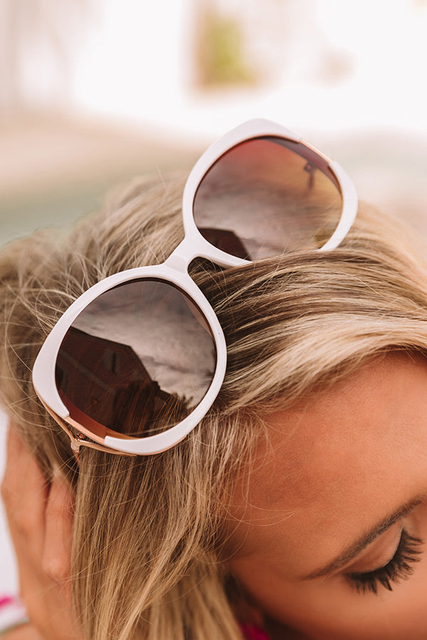 There is no such thing as too many pairs of sunglasses, so go ahead and add our adorable "Sunshine Suite Sunnies" to your cart with their thick rounded white frames, rose gold ear pieces, and dark tinted lenses!