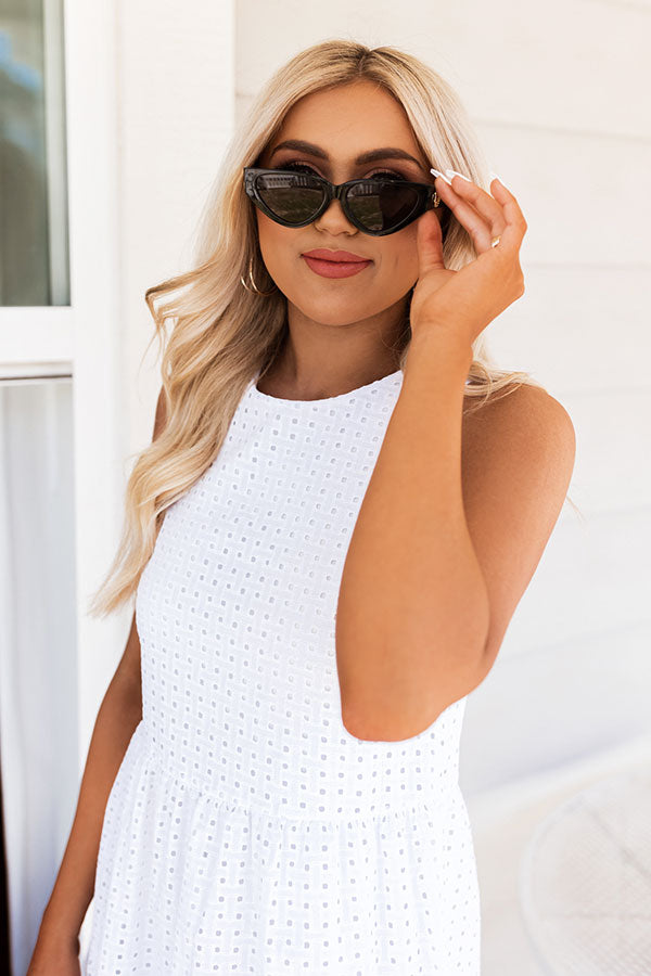 You are guaranteed to look chic when you wear these trendy sunnies featuring uniquely shaped black frames and dark tinted lenses!