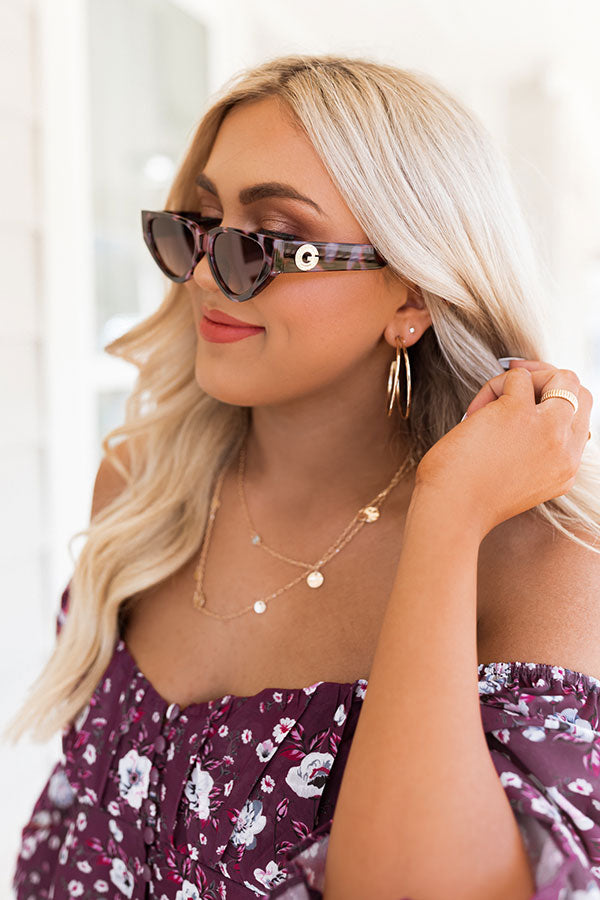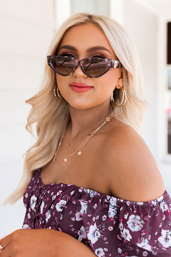 You are guaranteed to look chic when you wear these trendy sunnies featuring uniquely shaped dusty purple colored frames and dark tinted lenses!