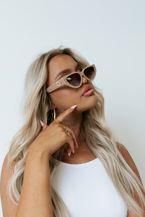 You are guaranteed to look chic when you wear these trendy sunnies featuring uniquely shaped iced latte colored frames and dark tinted lenses!