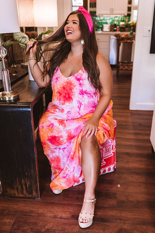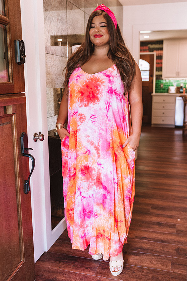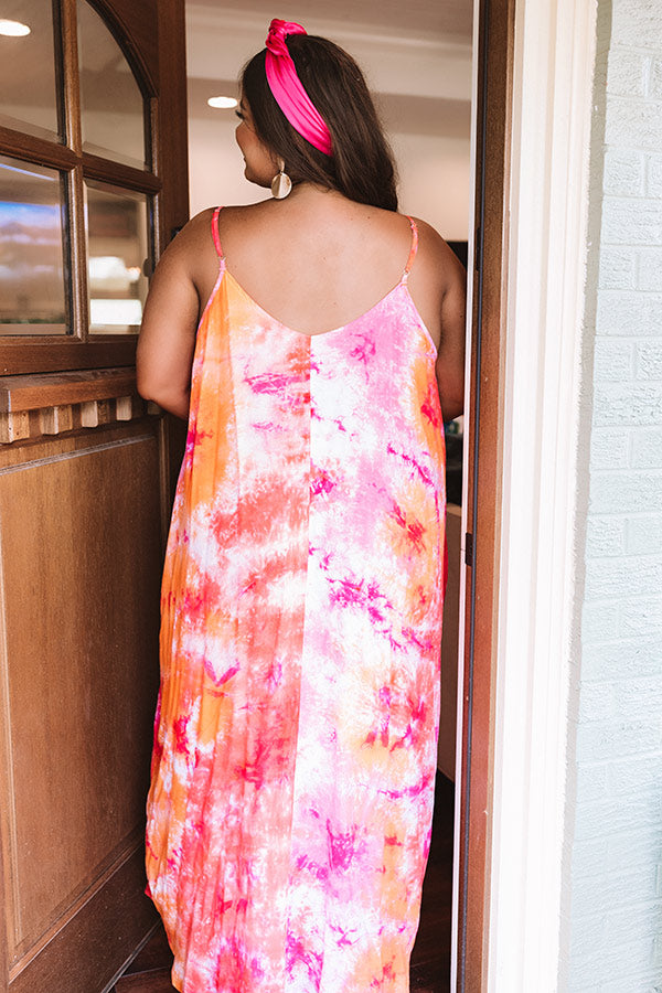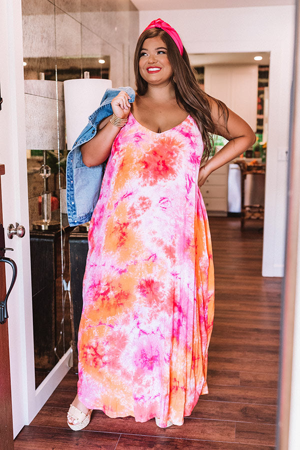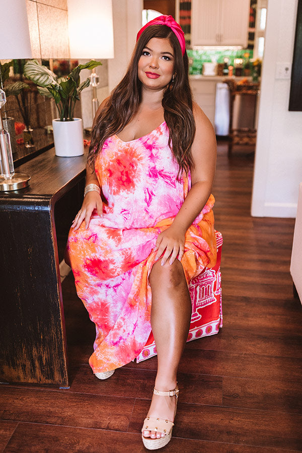 Surfing Until Sunset Tie Dye Maxi In Tangerine Curves