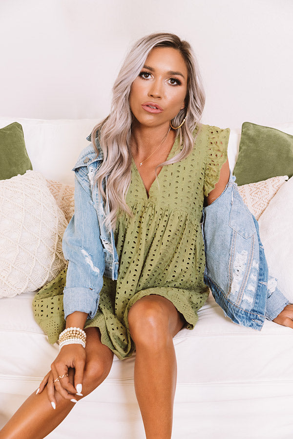 "Sway into style" with this adorable sage colored romper featuring lightweight material, wide shoulder straps with ruffled trim, eyelet detailing, a v-cut neckline, a keyhole accented upper back with a button closure, accent side pockets, and a flowy silhouette that falls into an uneven hemline with lace detailing! PLUS, it features a matching slip! You can pair this delicate piece with a brown platform heel and faux leather bucket bag, but you can also wear it layered under a jean jacket with "The Jess Faux Leather Heel in Natural" and our "Merlot Nights Hat in Cream!"