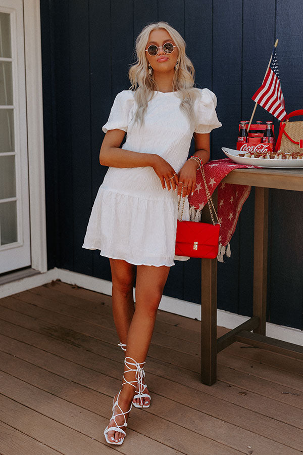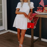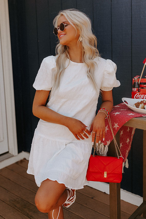 Flirt your way into summer with our darling little white 'Sway The Day Away Shift Dress' featuring lightweight material, a rounded neckline, short puff sleeves, a keyhole accented upper back with a button closure, and a relaxed silhouette that falls into a straight peplum hemline! on products