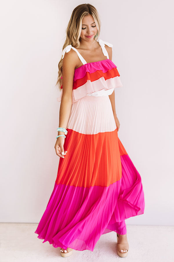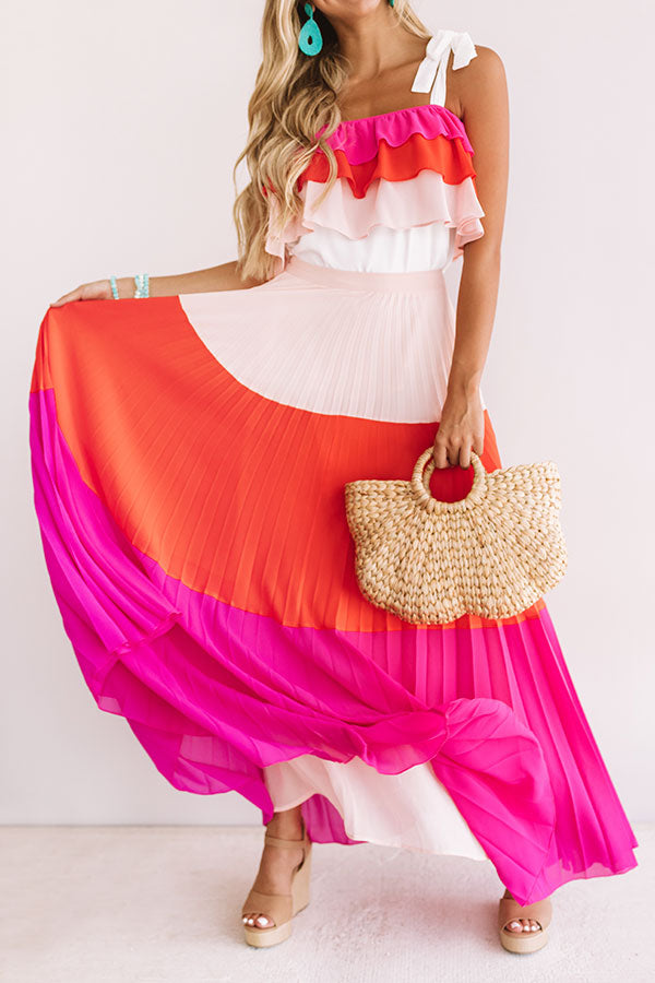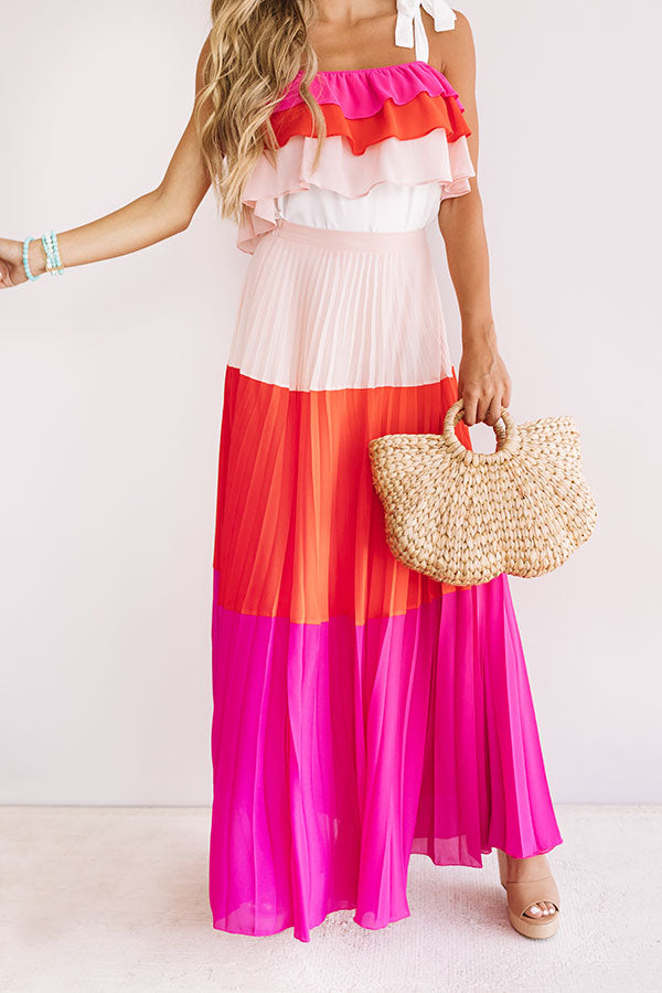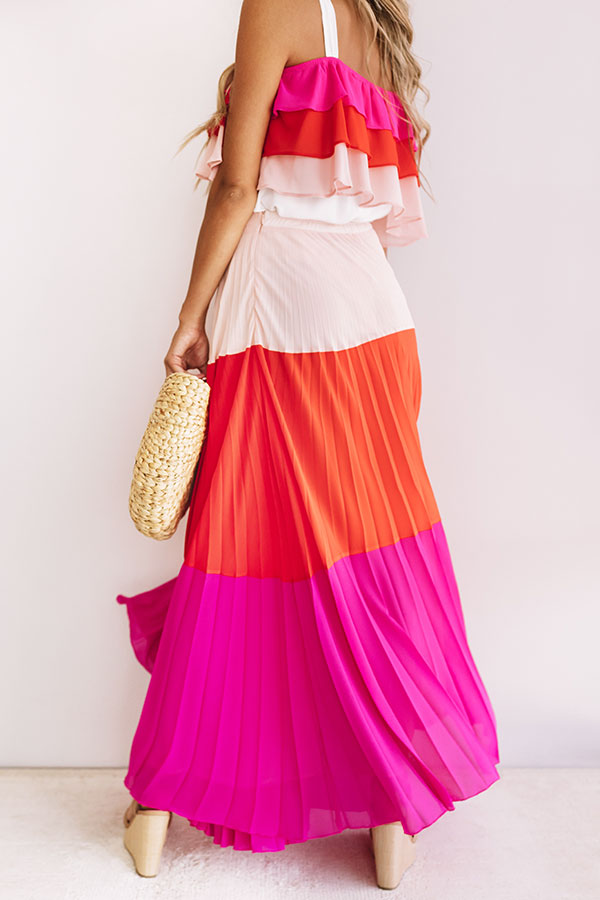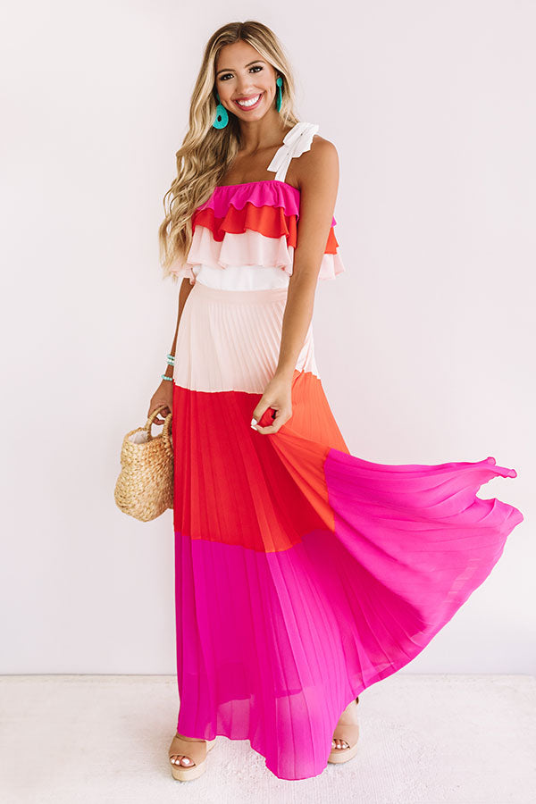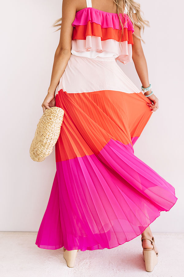 When you wear this breezy skirt, you won't want to sway slowly in it, you will want to twirl to show off its beautiful pleated fabric, color block pattern, elastic waistband, and zip up back! This airy piece can be paired with our matching "Broadway and Bellinis Shift Tank," nude wedges, and a straw tote, or with our "Love and Limoncello Tank in White" and our white "Wyatt Wedge" for an striking outfit that will let this stunning piece speak for itself! Measurements