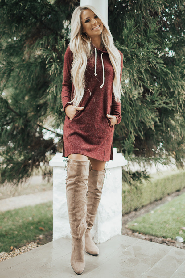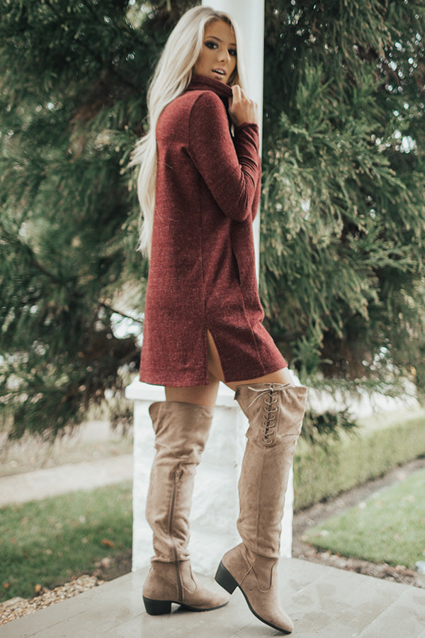Sweater Weather Tunic Dress in Maroon