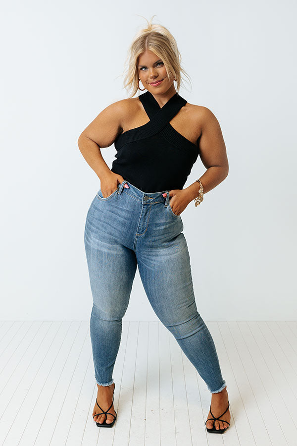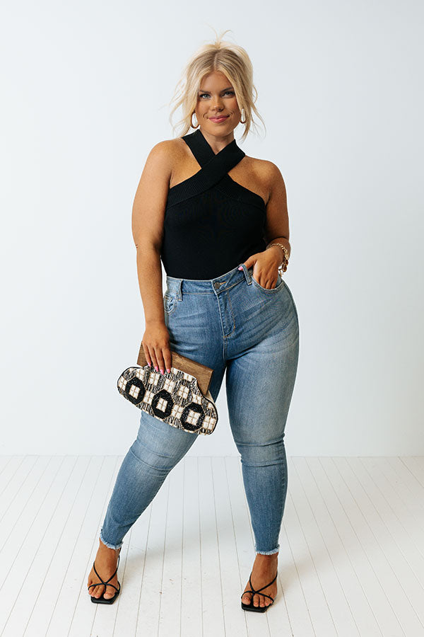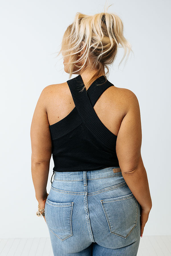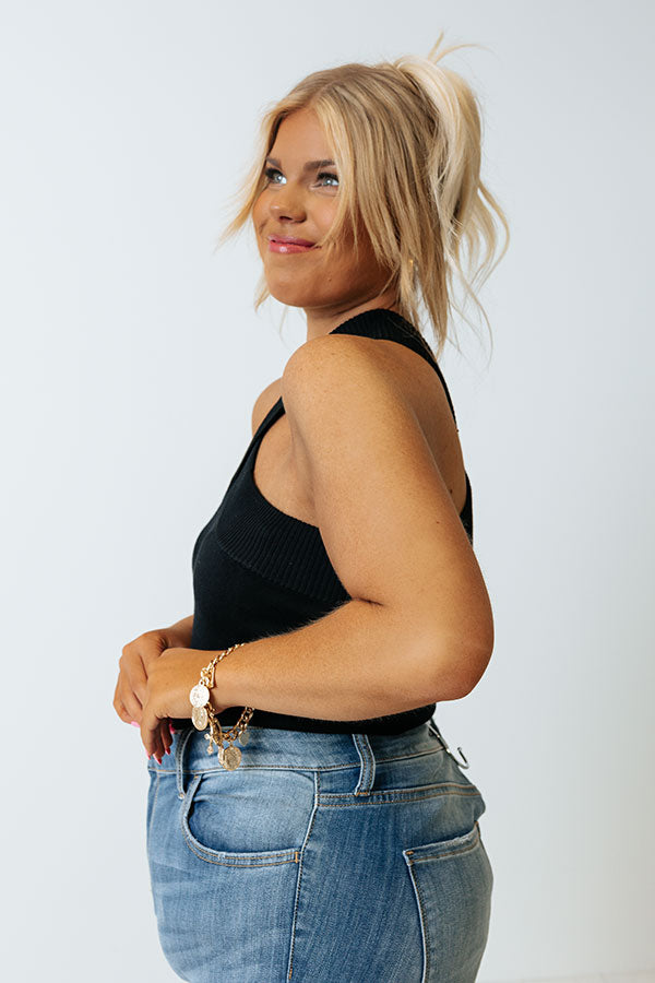 Keep your look sweet and casual in this chic black plus size bodysuit featuring soft lightweight material, a flirty high strap neckline with a sleeveless fit, and a flattering figure hugging silhouette that ends in cheeky fit bottoms!