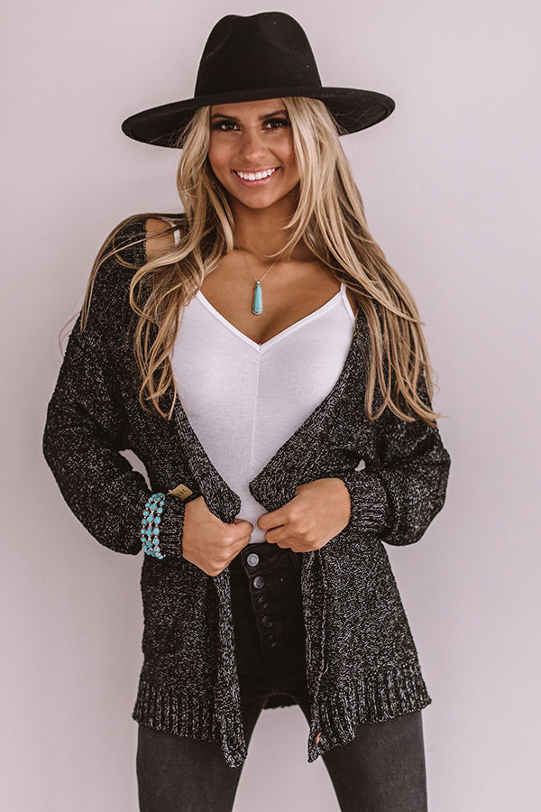 You are sure to look "sweet and divine" in this adorable little black cardigan featuring soft lightweight tight knit material with subtle texturing, long loose sleeves with fitted cuffs, and a relaxed button up silhouette that falls into a straight mid-thigh length hemline! You can style this versatile piece with just about anything from a basic tank to a sweater, jeans to skirts or dresses, booties to wedges or sandals, clutches to totes, and hats to earrings! Measurements
