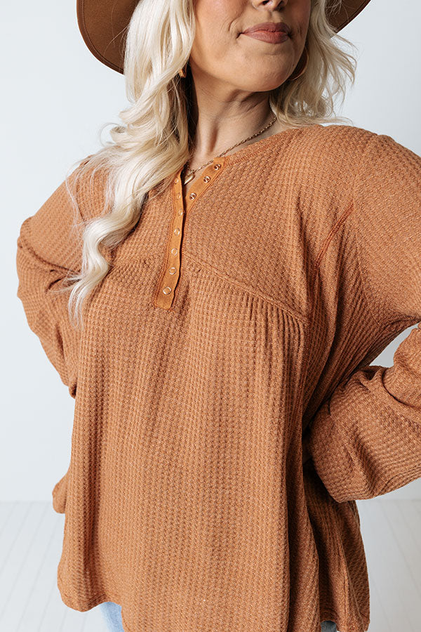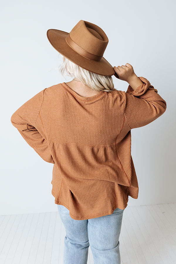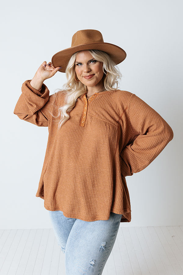 Sweet And Sincere Waffle Knit Top In Rust Curves