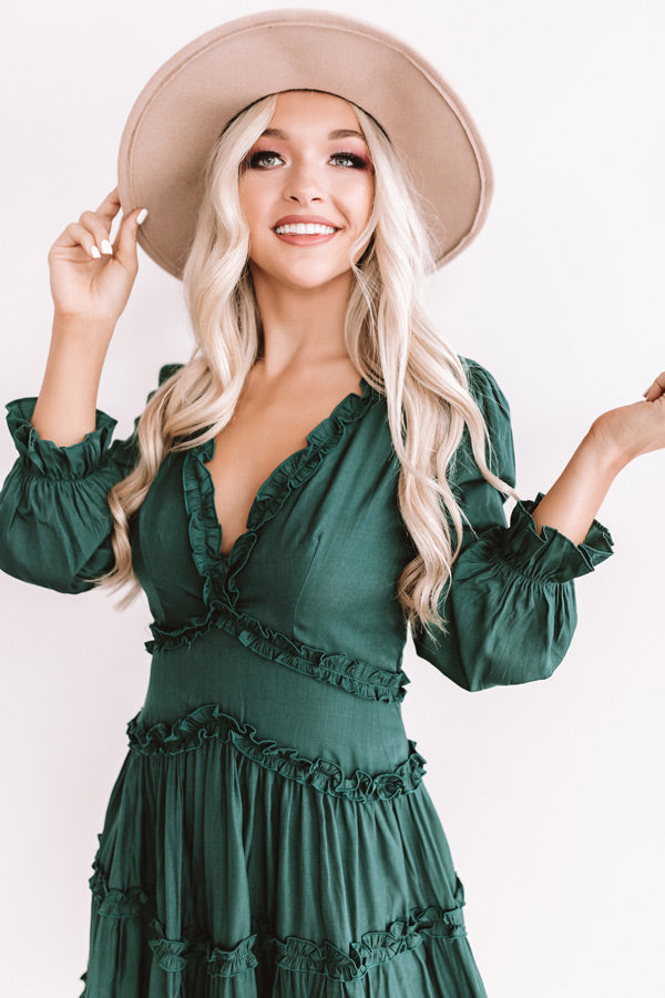 Sweet And Stunning Babydoll Dress In Hunter Green