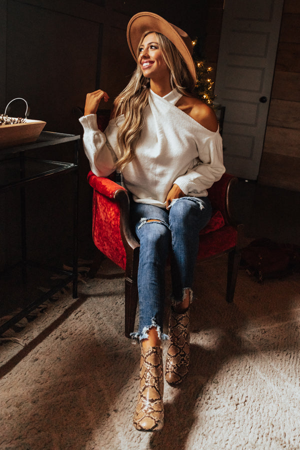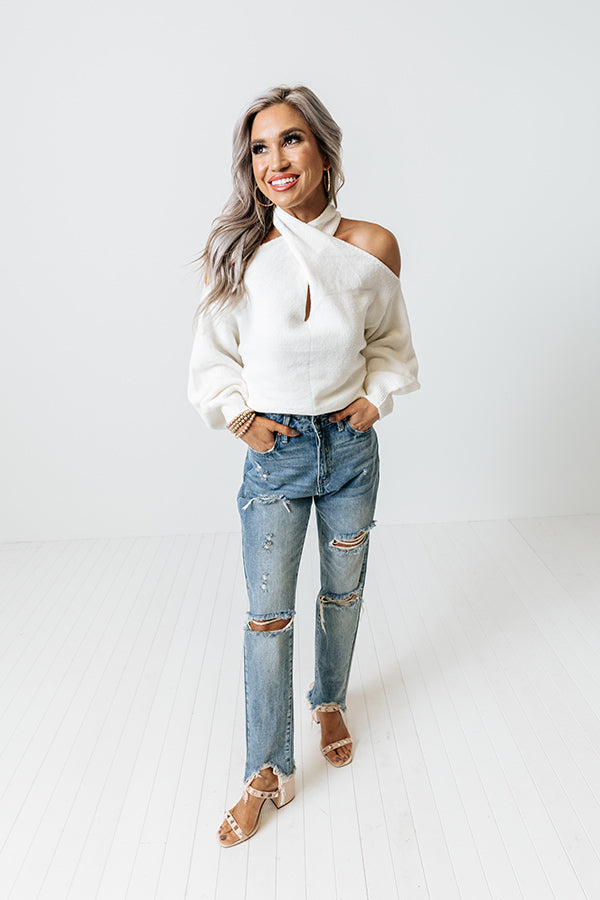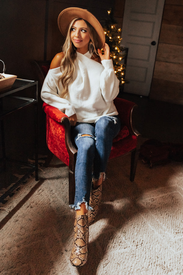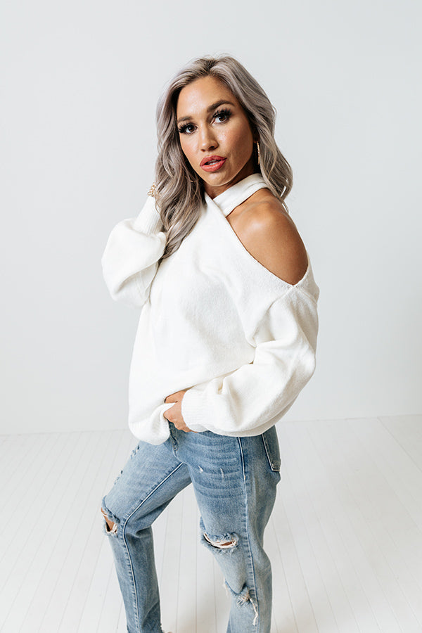 Sweet Embrace Cold Shoulder Sweater In Ivory