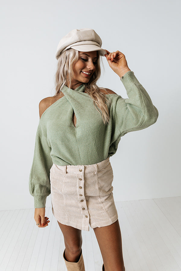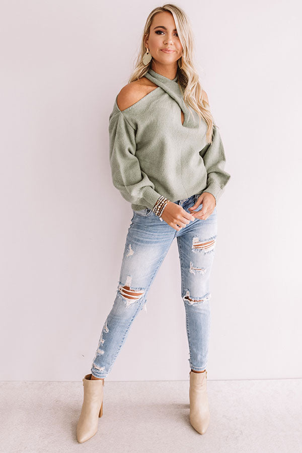 Sweet Embrace Cold Shoulder Sweater In Pear