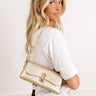 - This chic purse is a must-have accessory for every trendsetter's wardrobe. Its coiled strap accents and unique twist closure add standout details to elevate any outfit. - Faux leather material with a subtle texture - Gold toned metal hardware - Flap and twist closure as well as interior zip closure - A detachable faux leather shoulder strap with coil details on each side - A detachable, adjustable length crossbody strap - A fully lined interior with a zippered pocket
