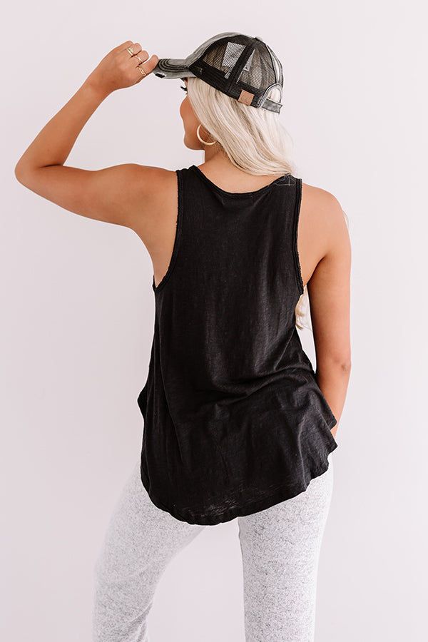 We have no doubt you will look "sweet" in this black casual cute tank featuring soft lightweight material, a scooped neckline, 1-inch sleeveless shoulder straps, and an ultra relaxed silhouette that falls into a rounded hemline! You can dress this everyday basic down with some grey joggers, a baseball cap, and a trendy leopard sneaker and tote, but you can also style it up with some distressed denim shorts, sunnies, and "The Rosella Wedge in Black!" Measurements