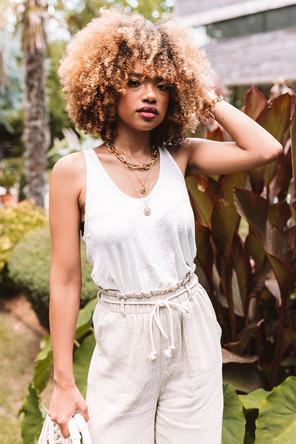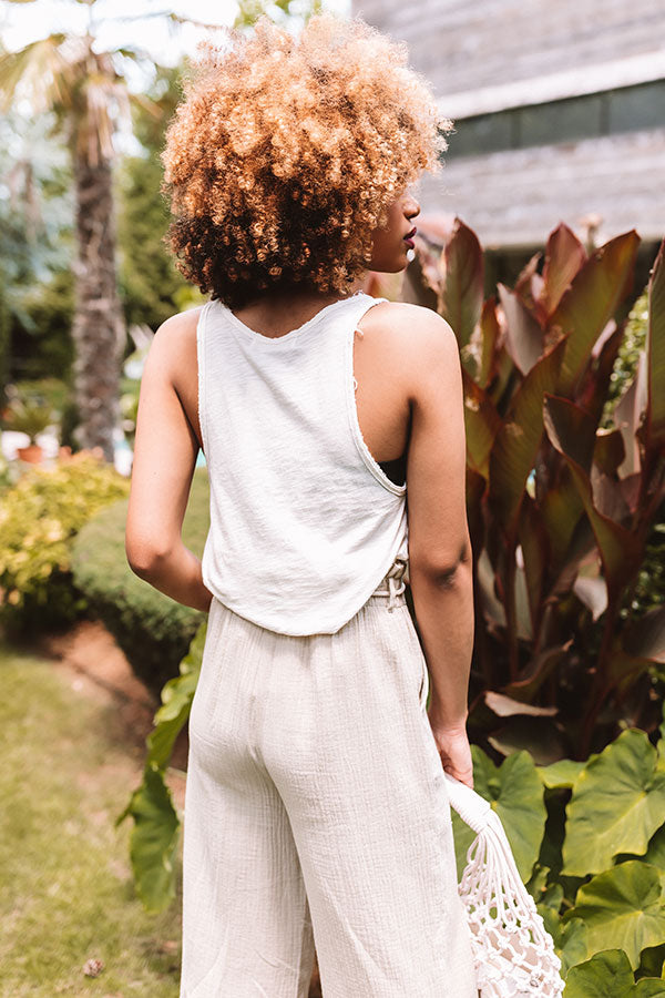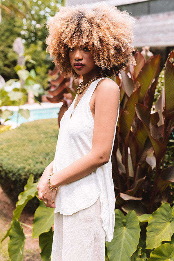 We have no doubt you will look "sweet" in this casual cute ivory colored tank featuring soft lightweight material, a scooped neckline, 1-inch sleeveless shoulder straps, and an ultra relaxed silhouette that falls into a rounded hemline! You can dress this everyday basic down with some neutral pants and mule heels, and a chic faux leather tote, but you can also style it up with some distressed denim shorts, "The Alba Wedge in Ivory," and our "Plans In Paris Wool Hat in Cream!" Measurements
