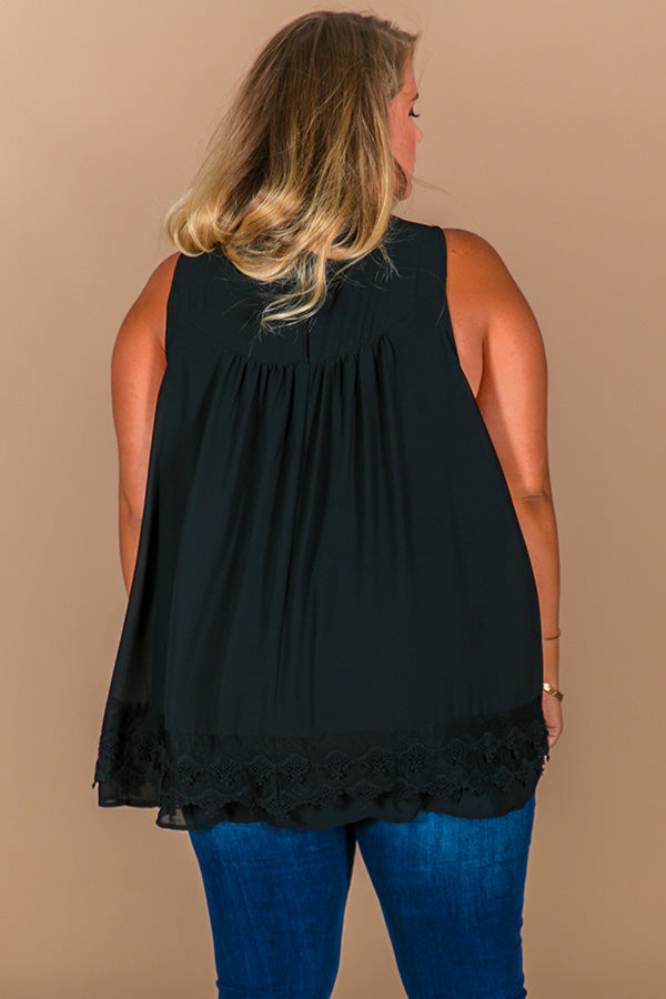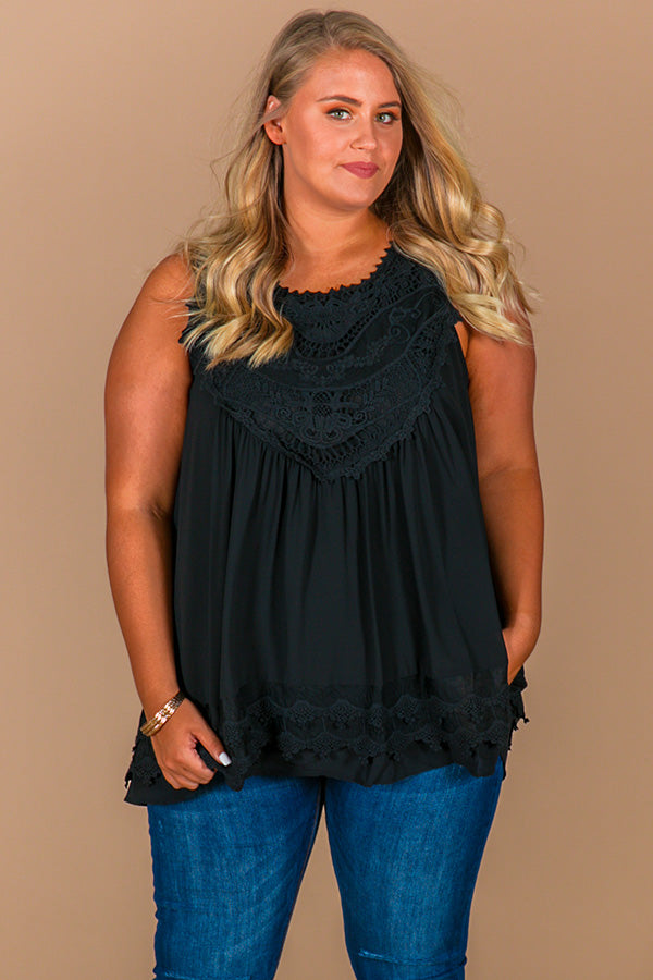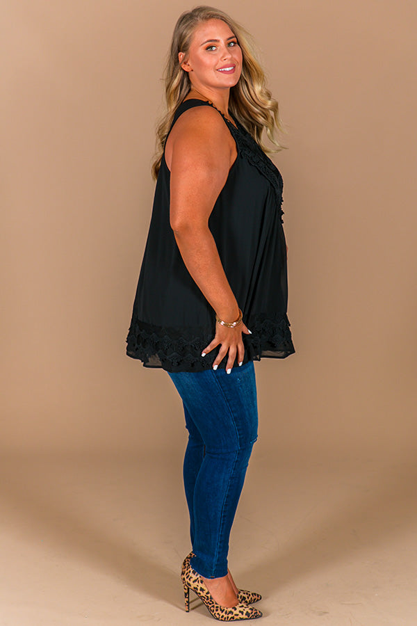 Whether you are headed for coffee or cocktails, the "Sweet Nothings Crochet Top" makes the perfect companion! This sweet shift top has a gorgeous crochet detailed neckline, a keyhole cutout with a button closure, a sleeveless polyester bodice, and a crochet trimmed hem. Style with your favorite denim and a sassy pair of heels for a chic wear-anywhere look with boho vibes! Measurements