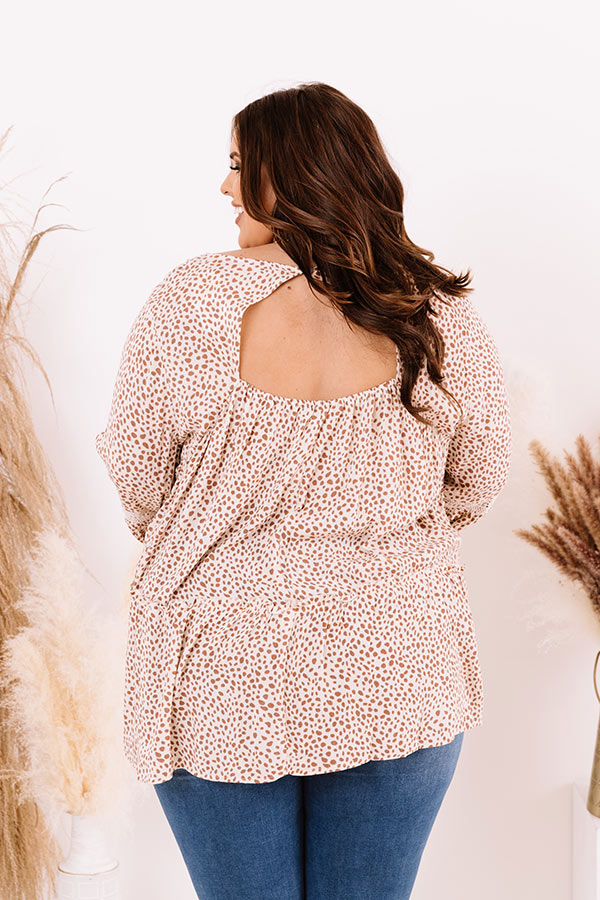 Plus Size - You are sure to have heart eyes for our charming cream colored 'Sweet Poetry Shift Top' featuring lightweight flowy material patterned with a small white spotted print, a scooped neckline with intricate crochet detailing, long loose sleeves with elastic band cuffs, a cutout open back with a button closure, and an ultra relaxed silhouette that falls into a rounded hemline!