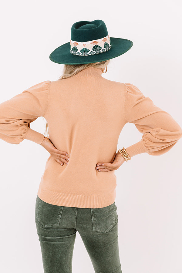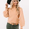 Welcome sweater weather in style with our charming iced latte hued 'Sweet Sanctuary' top featuring soft lightweight but warm tight knit material, a high rounded neckline, long bishop sleeves with fitted cuffs, and a relaxed silhouette that falls into a straight hemline! Measurements